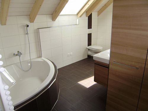 Holzbau mit verputzter Fassade, Sichtsparrenlage und Holzbalkendecken.