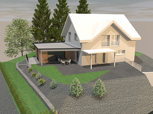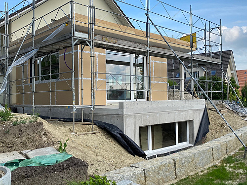 Wohnraumerweiterung Holzelementbau mit Unterkellerung.